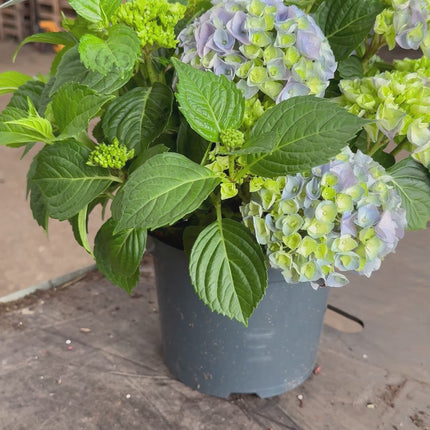 Hoogte en groei: De Hydrangea macrophylla in het blauw groeit doorgaans tot 100-150 cm hoog, met een stevige en compacte groeiwijze. De plant heeft een bossige uitstraling, waardoor hij uitstekend geschikt is voor gebruik als haagplant, in borders of als accent in de tuin.