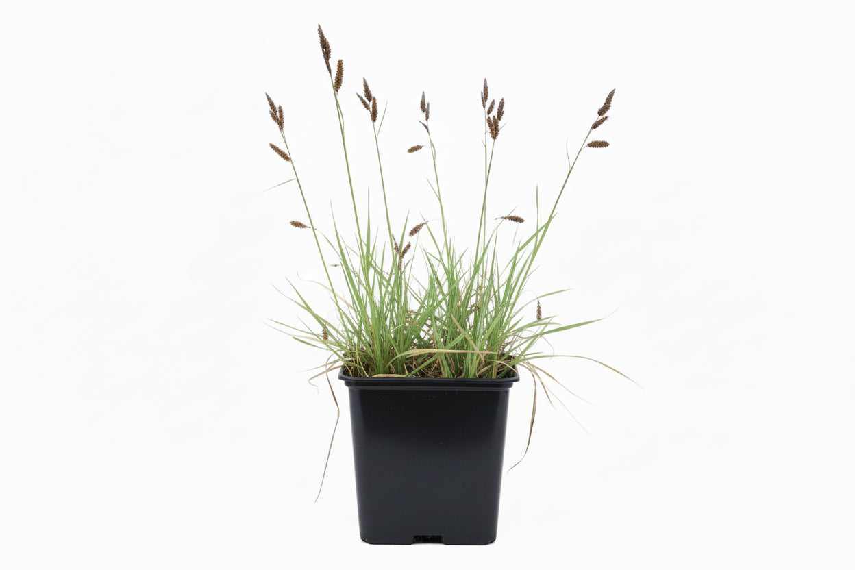 Blauwe zegge vormt lage, uitbreidende pollen met opvallend blauwgroen blad. De subtiele, donkerbruine bloeiaren verschijnen in het voorjaar en zorgen voor een natuurlijke uitstraling. Door zijn bodembedekkende groei is deze soort zeer geschikt voor natuurlijke borders, oevers en biodiversiteitsgerichte beplanting.