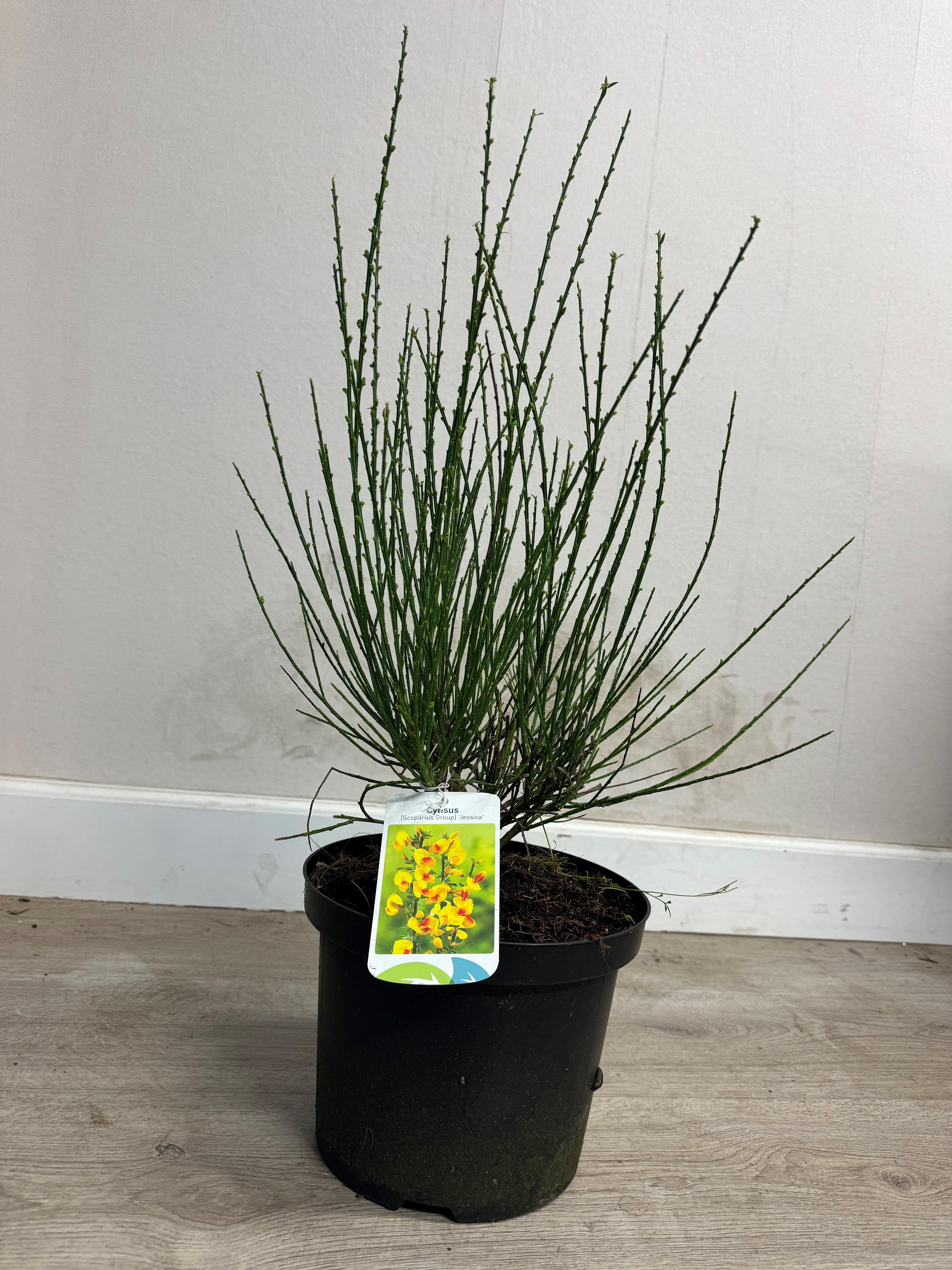 De Cytisus Scoparius 'Jessica', ook wel bekend als de bezemstruik, is een wintergroene struik die tot de familie van de vlinderbloemigen behoort. Met zijn compacte groeiwijze en overvloedige bloemen, trekt deze cultivar ongetwijfeld de aandacht in elke tuinomgeving. 'Jessica' staat bekend om zijn heldere gele bloemen die in overvloed bloeien van het late voorjaar tot het vroege zomerseizoen, waardoor een prachtig contrast ontstaat met het diepgroene blad.