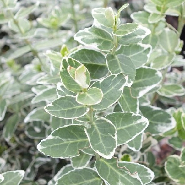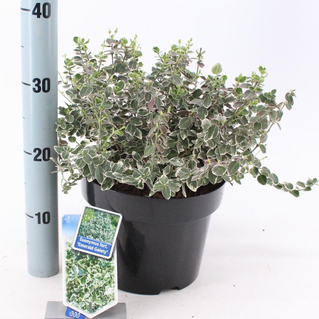 De Euonymus fortunei 'Emerald Gaiety' is een charmante, wintergroene struik die de tuin kleur geeft met zijn opvallende, tweekleurige bladeren. De bladeren zijn donkergroen in het midden, omringd door een heldere witte rand. Deze sierheester heeft een compacte groei en vormt een prachtige bodembedekking, maar kan ook als kleine klimmer dienen met de juiste ondersteuning. Perfect voor borders, rotstuinen, of in een pot op een terras of balkon.