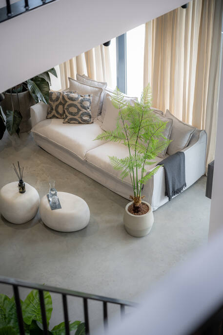 Combineer de Fern met een ruime sierpot om de plant visueel meer volume te geven. Een strakke pot zorgt voor een moderne uitstraling, terwijl een natuurlijke afwerking juist een warm en rustig geheel creëert. In combinatie met lagere kunstplanten ontstaat een gelaagd en evenwichtig groen beeld.