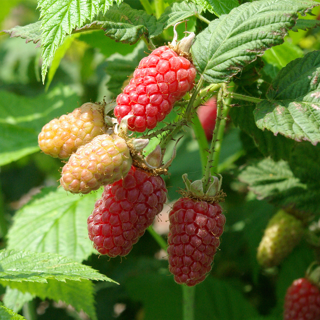 1x Rubus idaeus 'Malling Promise' – Frambozen die een zoete smaak bieden en uitstekend smaken in allerlei gerechten.