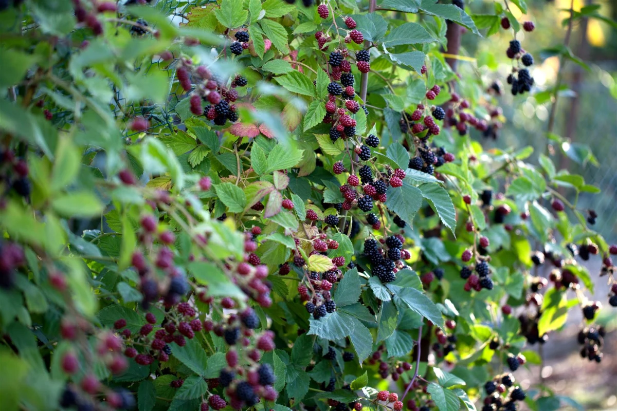 1x Rubus fruticosus 'Thornless Evergreen' – Doornloze bramen met een rijke, zoete smaak die in de zomer rijpen.