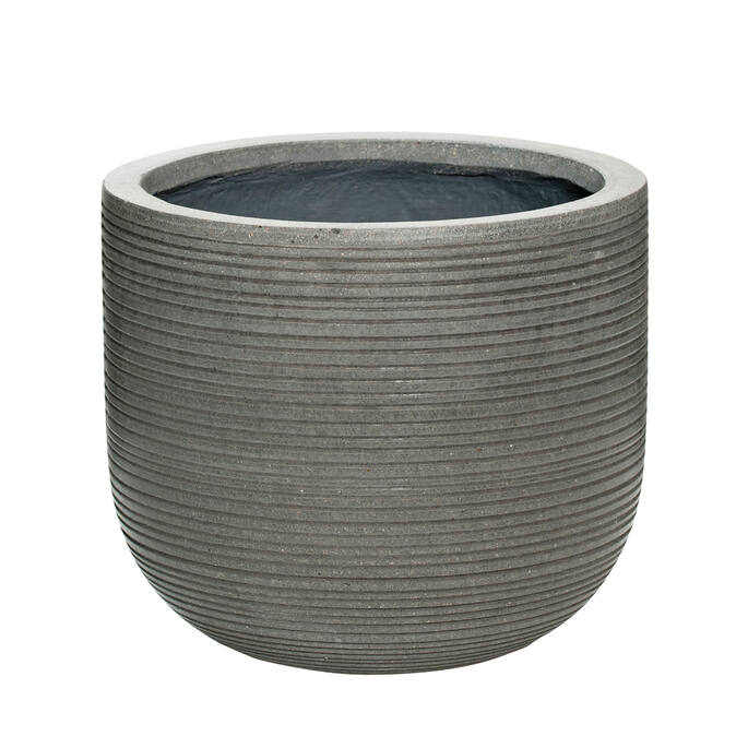 De Pottery Pots Cody S uit de Ribbed-collectie is een compacte bloempot met een stoere en eigentijdse uitstraling. De donkergrijze kleur in combinatie met de horizontale ribstructuur geeft deze ronde pot een modern en decoratief karakter. Dankzij het duurzame Ficonstone materiaal is de pot geschikt voor gebruik binnen en buiten en vormt hij een stijlvolle basis voor kleinere planten.
