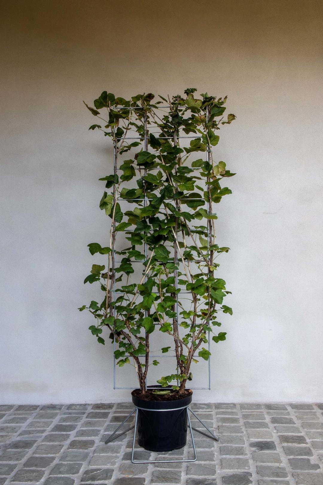 Deze Ribes rubrum is gekweekt in een haagelement/rek van circa 150 cm hoog en 50 cm breed, waardoor de plant direct een mooie, compacte groeiwijze heeft en eenvoudig kan worden toegepast als fruithaag of langs een schutting.